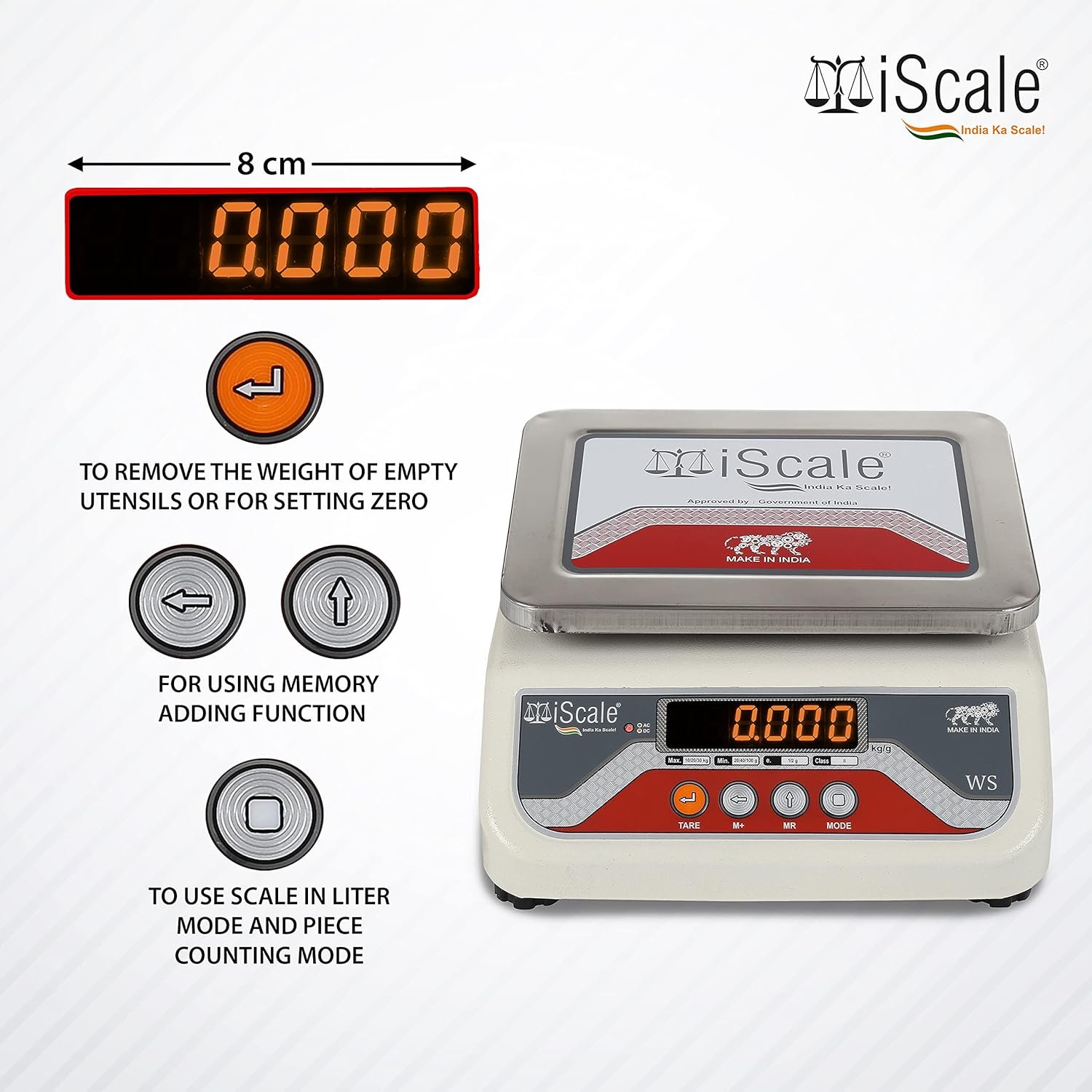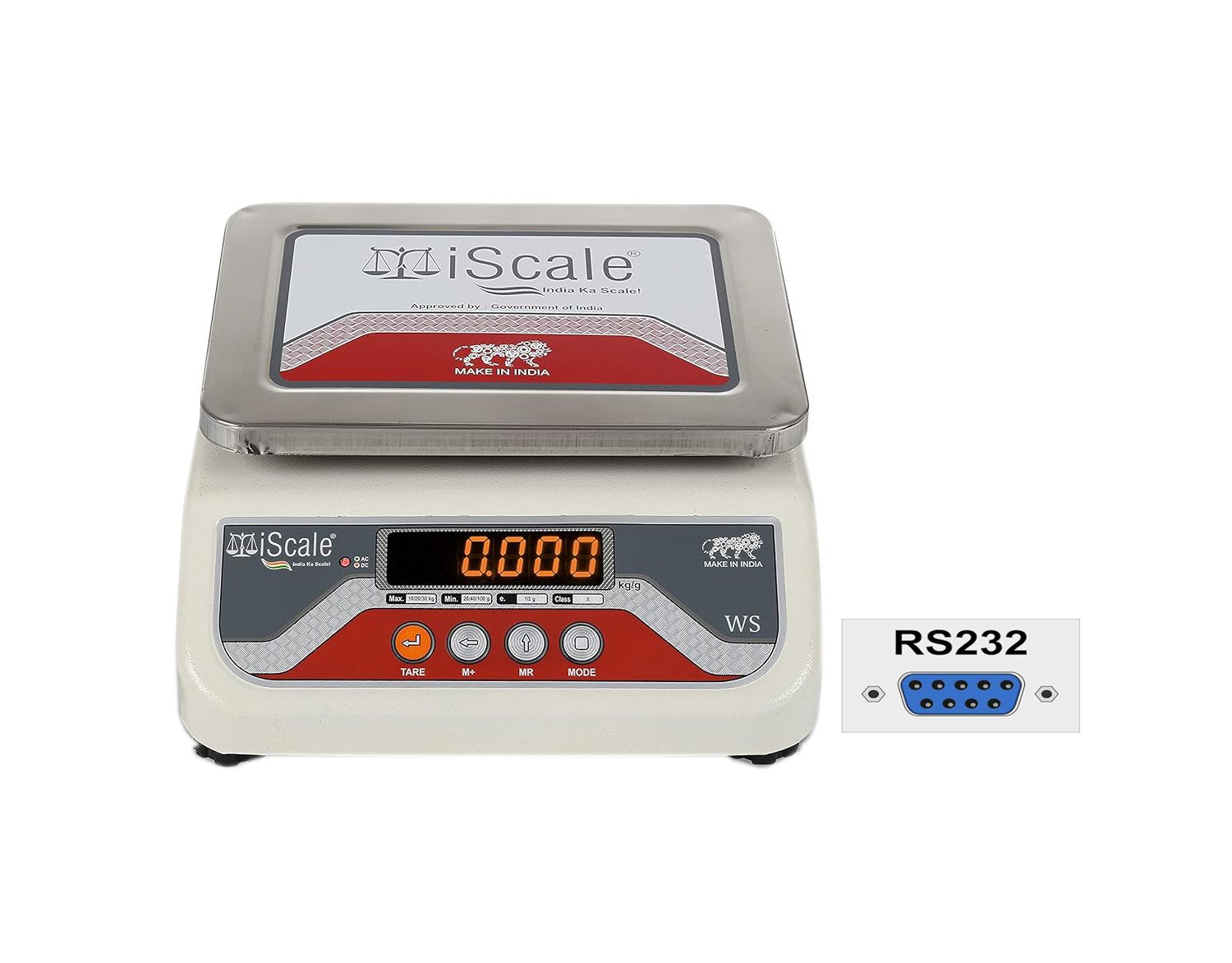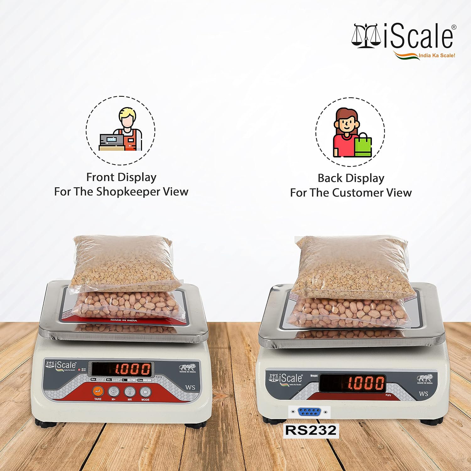 iScale i-03-RS232: 10kg Digital Weighing Scale for Commercial Purposes, Front & Back Red Display, Stainless Steel Pan(7×9 inches) – Ideal for Shop with Certificate with RS232 Serial port for computer connectivity & data transfer