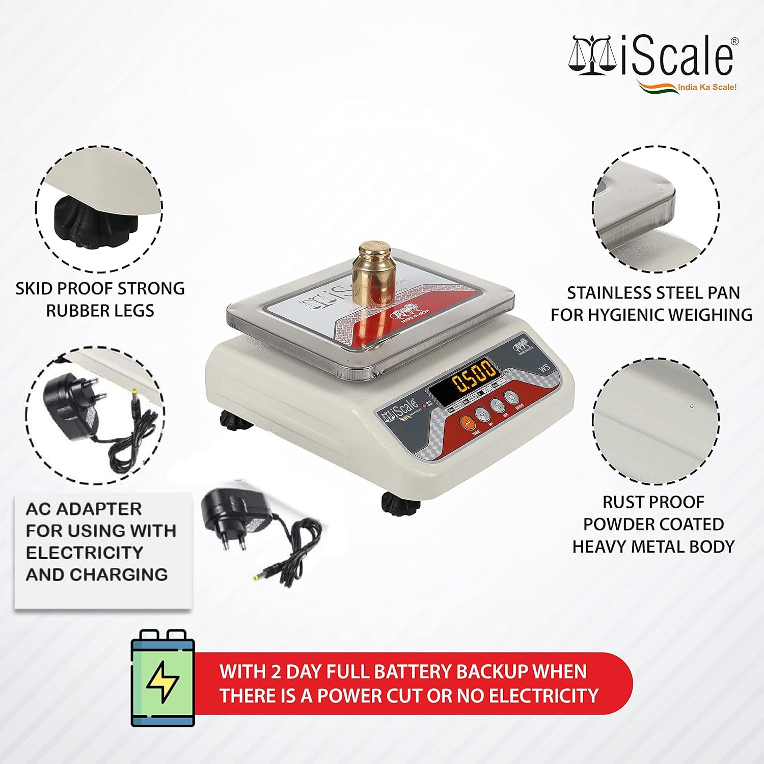 - Portable and safe: Directly Plug-in 220V Power Cord. There is also power backup of 2 days as it has in built non-spill able lead acid battery. When the power is 100%, the standby time is about 6 months. The scale will also automatically switch to power saver mode when it is in non-use condition, to save power.