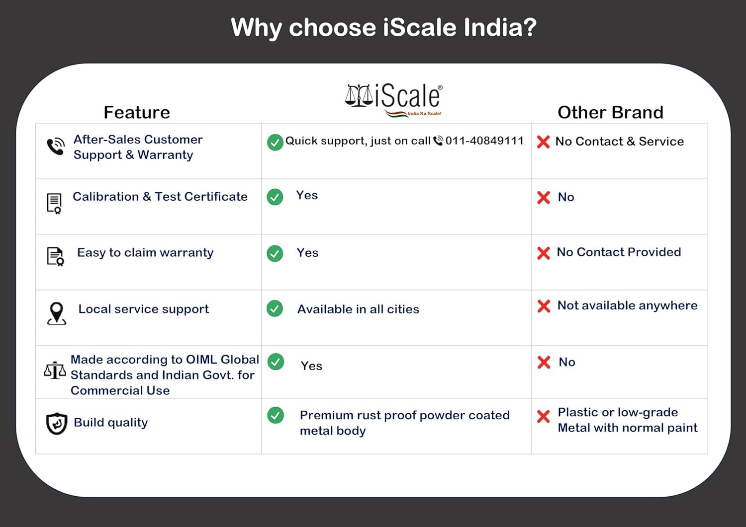 Legal Disclaimer: As per Rule 27(5)(iv) of the Legal Metrology (General) (Amendment) Rules, 2021, all commercial weighing scales above 50kg capacity must be verified at the place of installation by the Local Legal Metrology Department before use. This is a legal requirement, and the user is solely responsible for ensuring compliance every year.