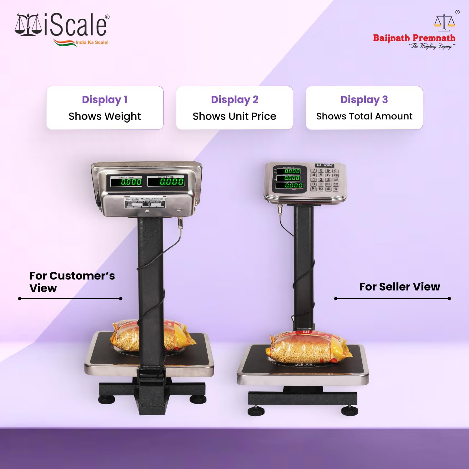 iScale i-02 Weight Capacity 30kg x 1g Digital Weighing Machine / Weighing Scale with Front and Back Double Display for Kirana Shop, Kitchen and Commercial Purposes (10×12 inches, Silver)