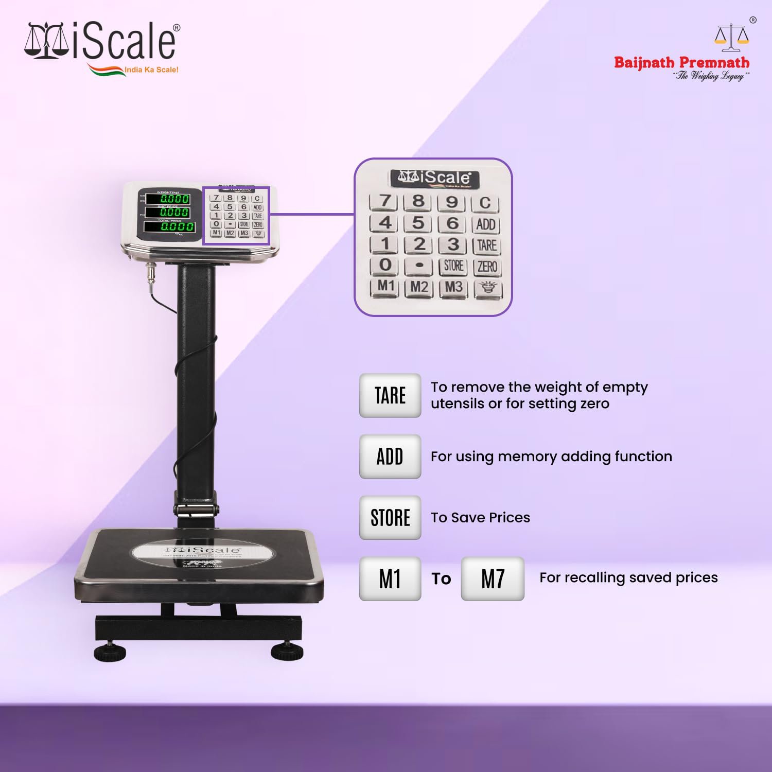 iScale ISP-150M Electronic Platform Weighing Scale 450x450mm Mild Steel | 150kg Capacity, 20g Accuracy | OIML R76 Compliant, ISO Certified Digital Weight Machine for Shop, Warehouse, Industrial Use