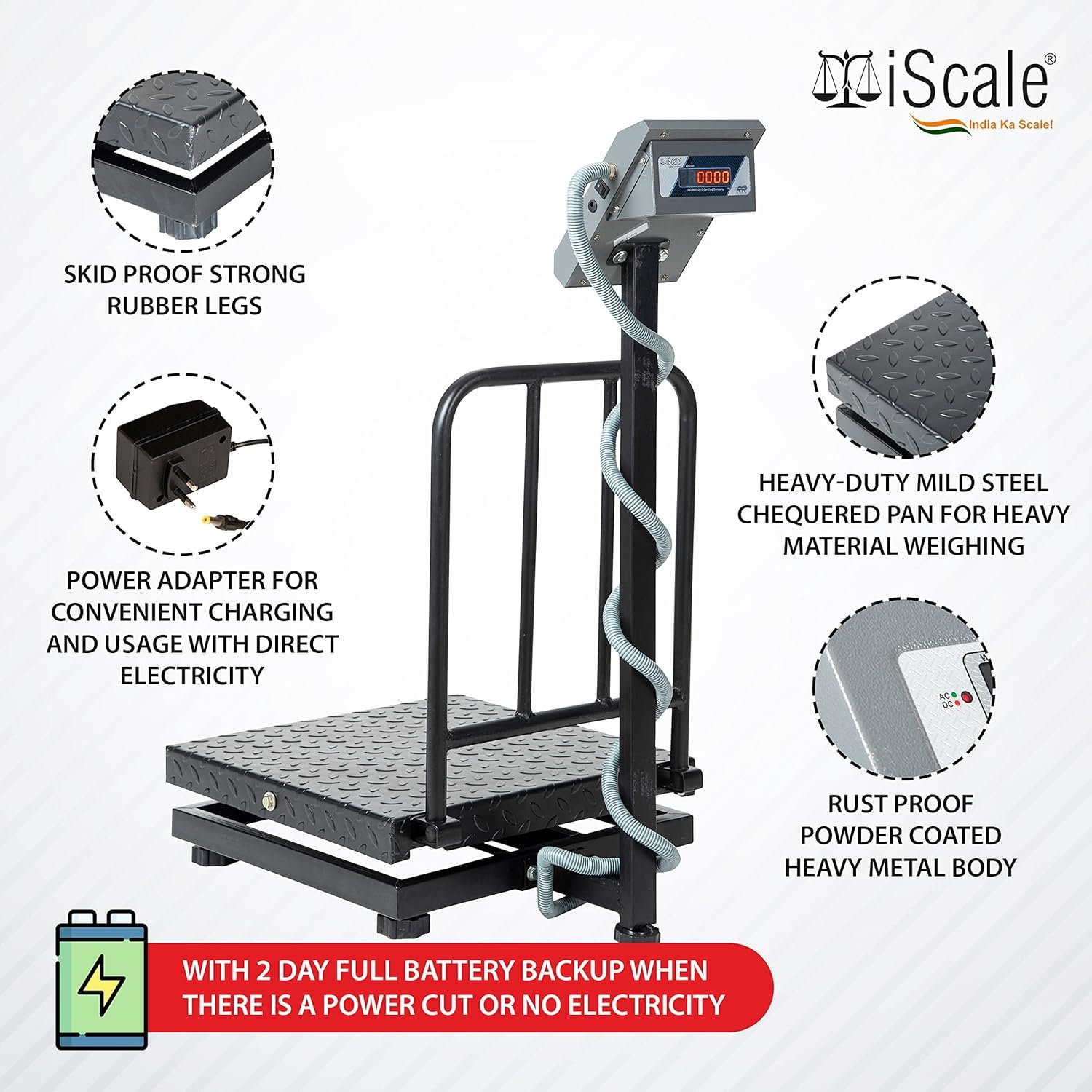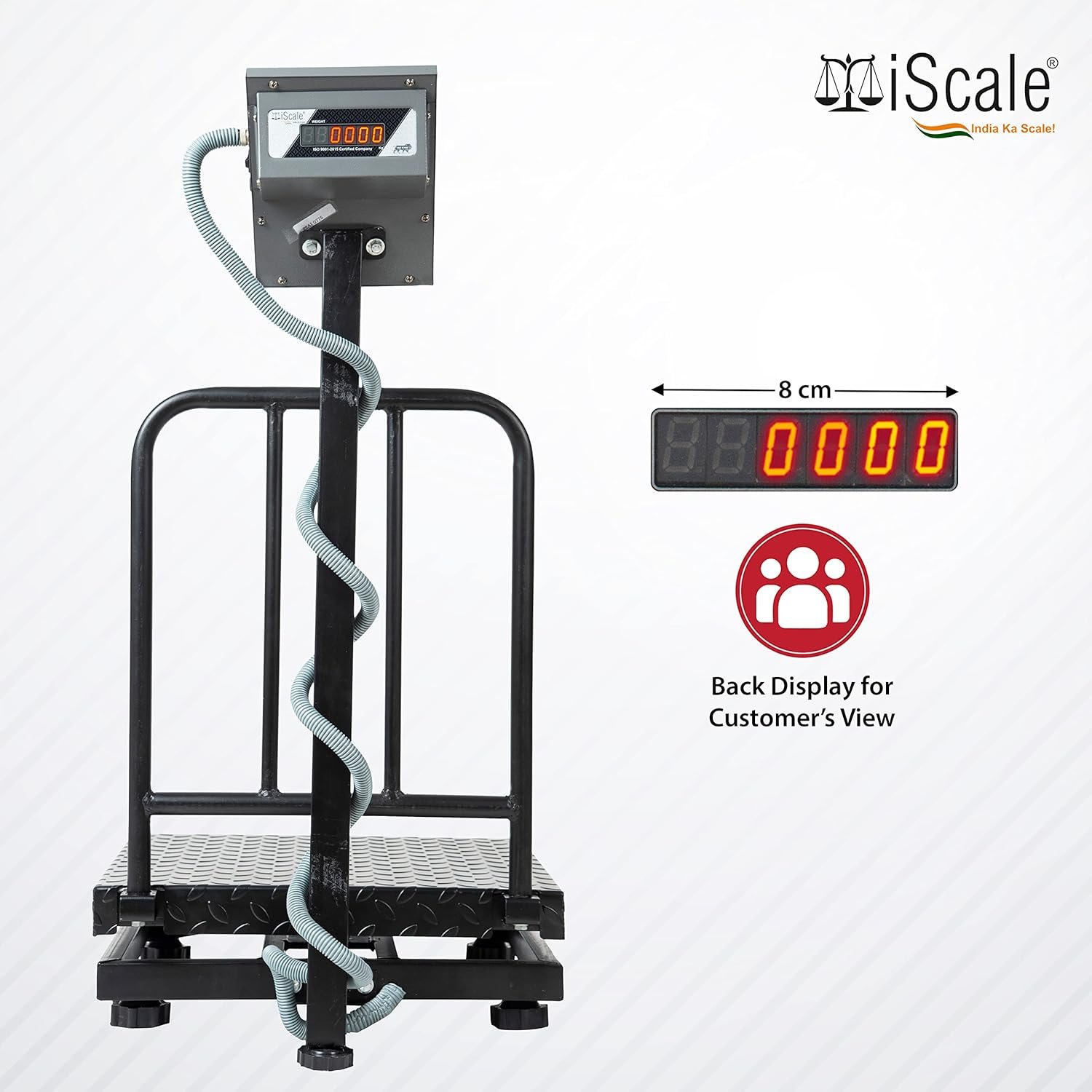 iScale i-19 Bluetooth Digital Weighing Scale |300kg× 50g | Front & Back Double Red Display | Free Easy to use Android/Pc App for Quick Billing | Heavy-Duty Mild steel Chequered Pan size 24×24″ | For Commercial & Industrial Use