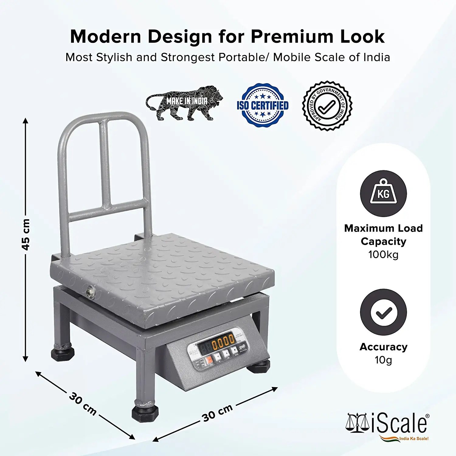 Modern Design for Premium Look.Maximum Load Capacity: 100kg Accuracy: 10g Dimensions with scale: Platform: 30cm x 30cm Strong Handle for the Ease of Mobility Strong Back-grill to hold larger packages. Multi-purpose Portable/ Mobile weighing machine. It Can Be Used in Hardware Shops, All Types Retail Stores, Industries, Warehouses and For All types of Robust Weighing Purposes Can be used anywhere for high accuracy weighing.