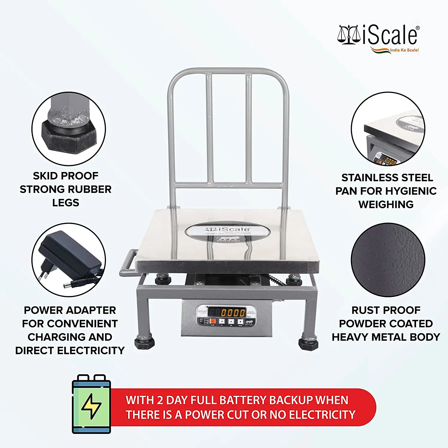 iScale Electronic Platform Weighing Scale 100kg Capacity 10g Accuracy Weight Machine Digital for Shop, Commercial and Industrial use Mild Steel Heavy Platform size 16×16 Inches (400x400mm)